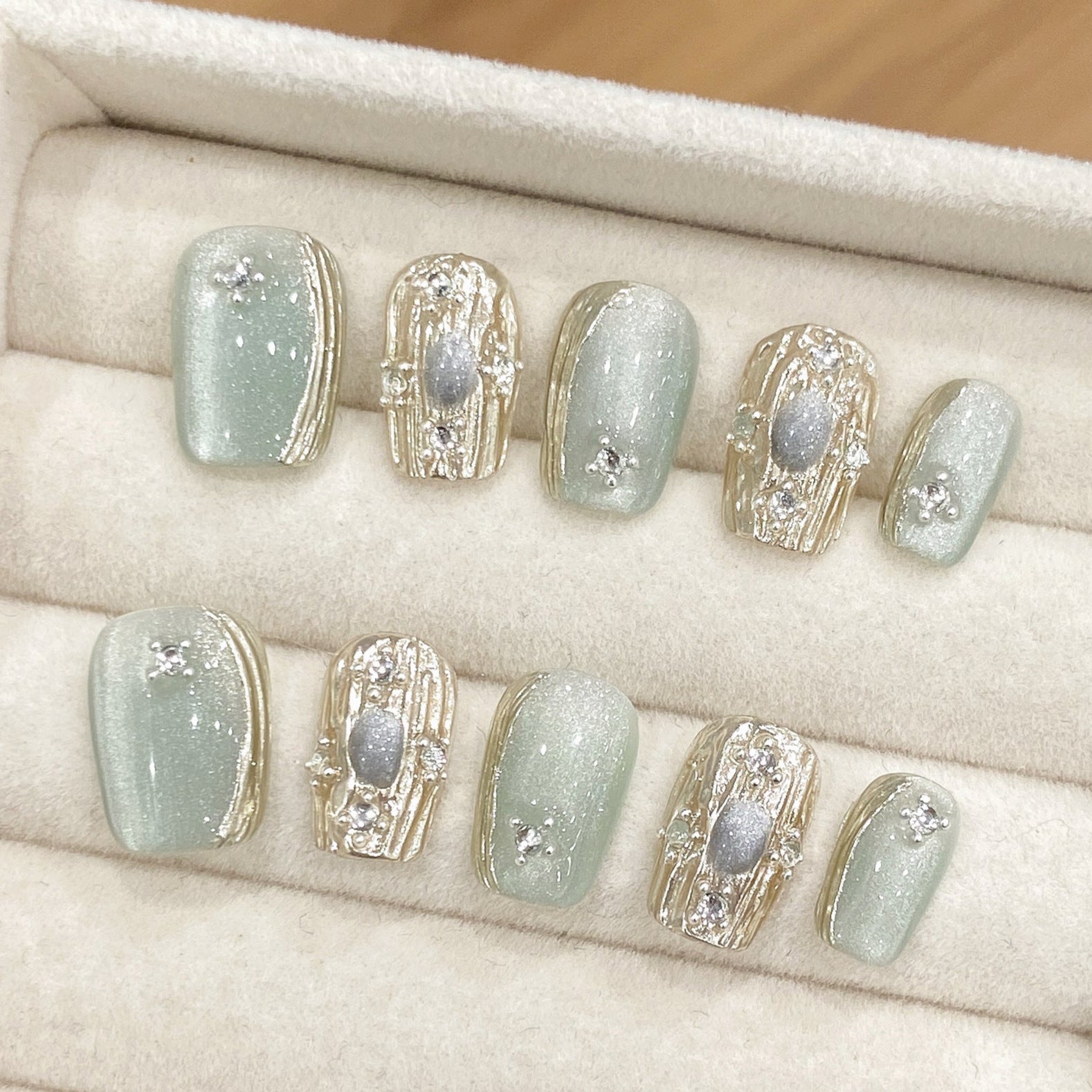 Transform your manicure into a timeless statement of sophistication with Buccellati Jade Radiance Press-On Nails, and let your hands shine with an unmistakable aura of luxury and charm.