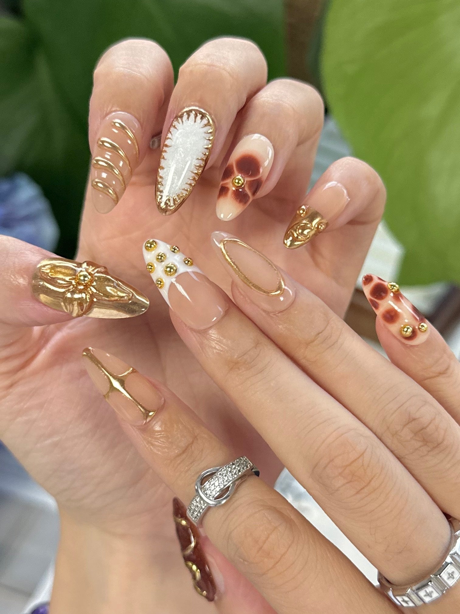 Unleash your wild side with the luxurious Golden Safari Press-On Nails, a stunning set designed for those who dare to stand out. Featuring a harmonious blend of earthy tones and elegant details, these nails combine boldness and sophistication to create an unforgettable look.