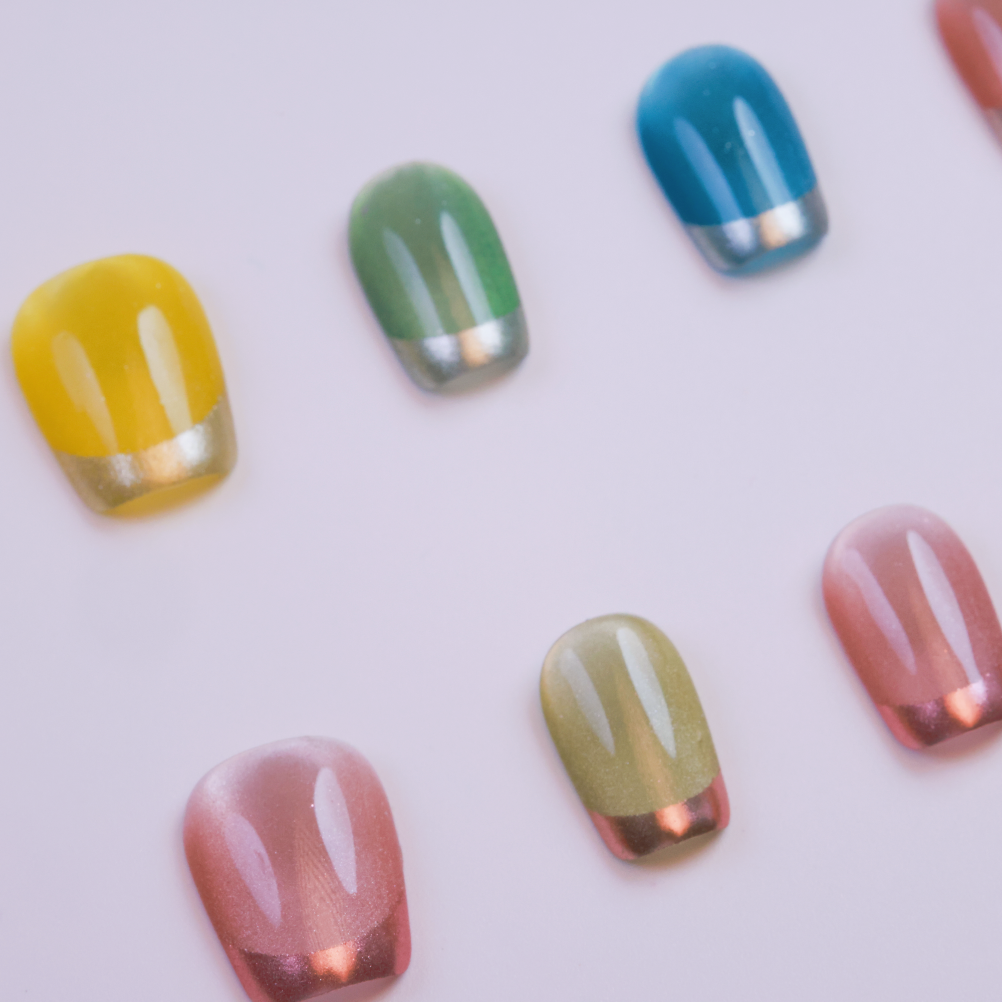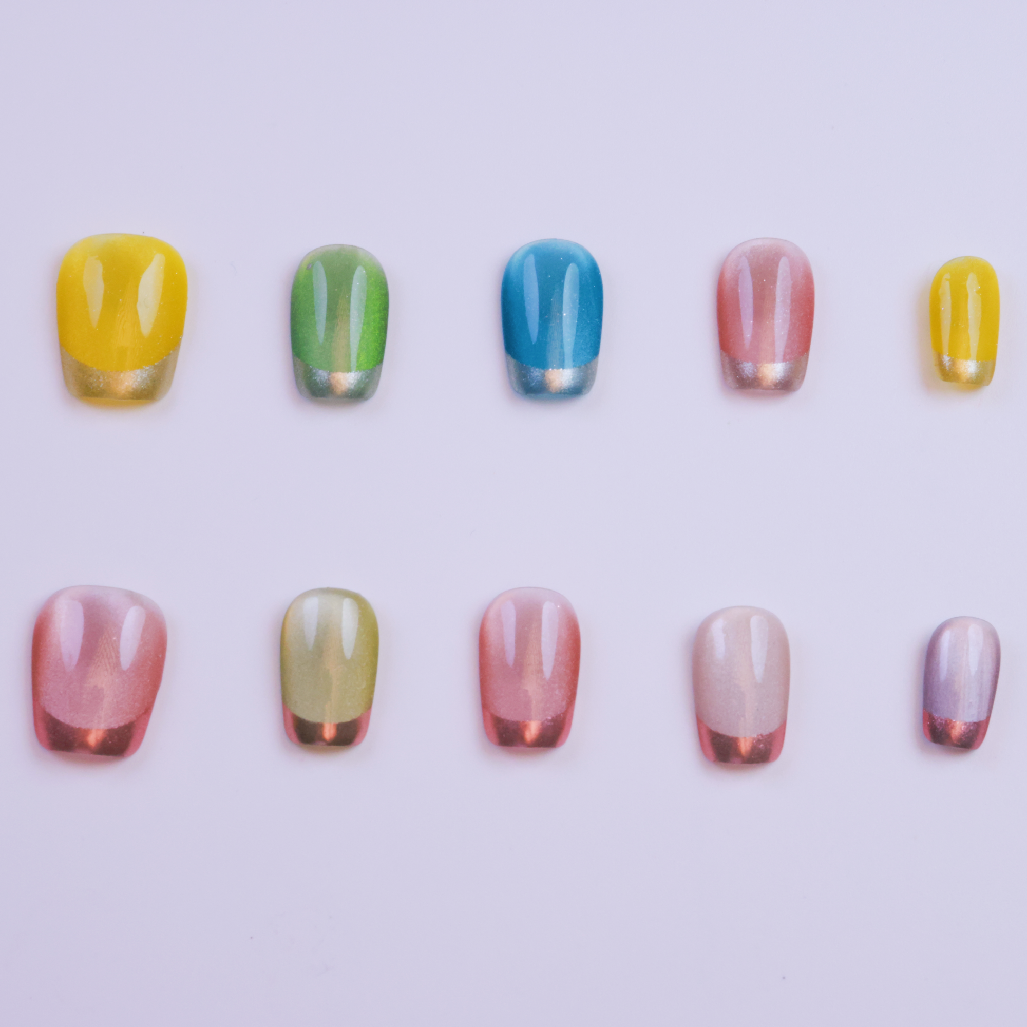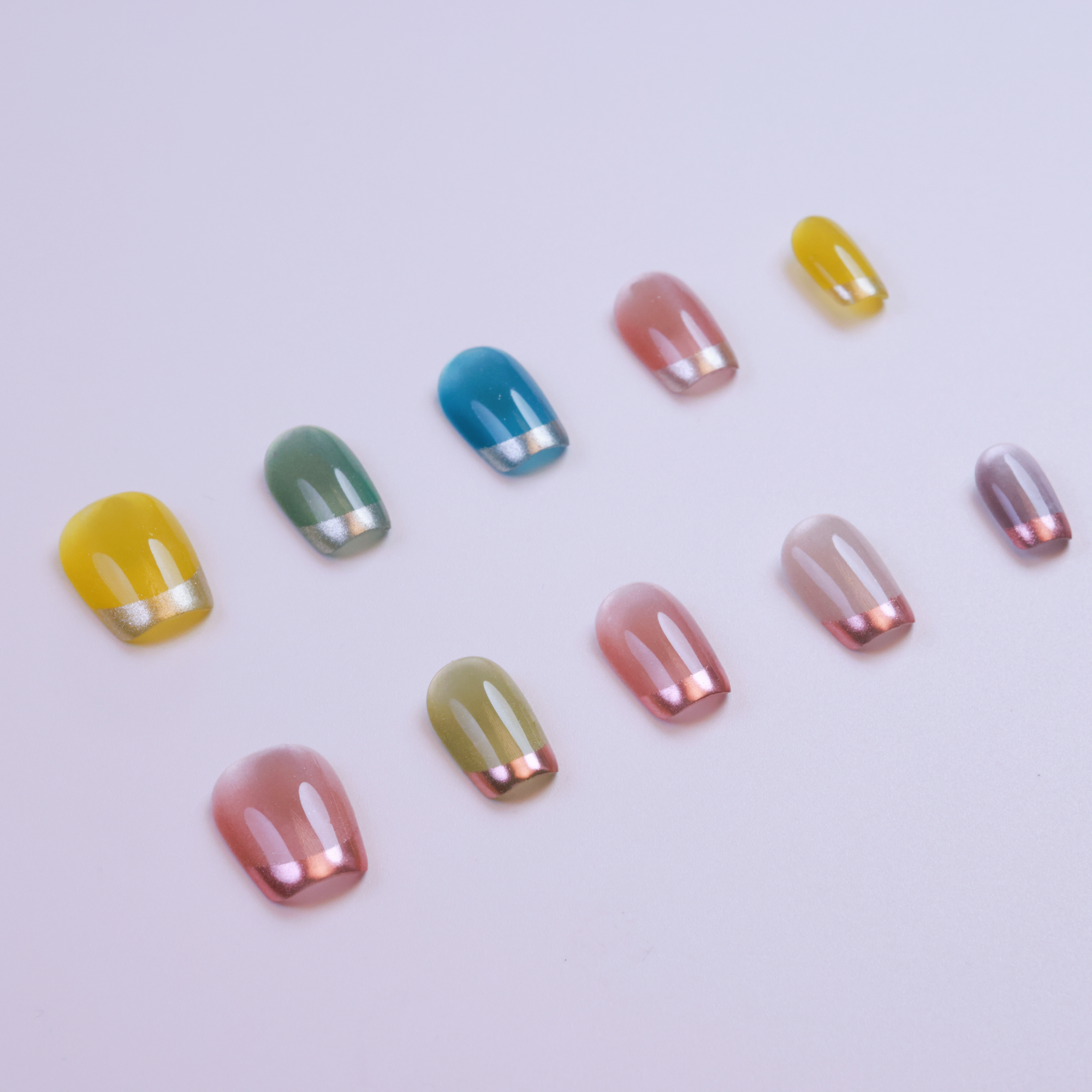 Elevate your style with our Pastel Elegance Press-On Nails. This set features soft, delicate pastel colors paired with chic metallic French tips, combining a subtle, feminine look with a modern twist. Perfect for everyday wear or special occasions, these nails exude effortless elegance and grace.