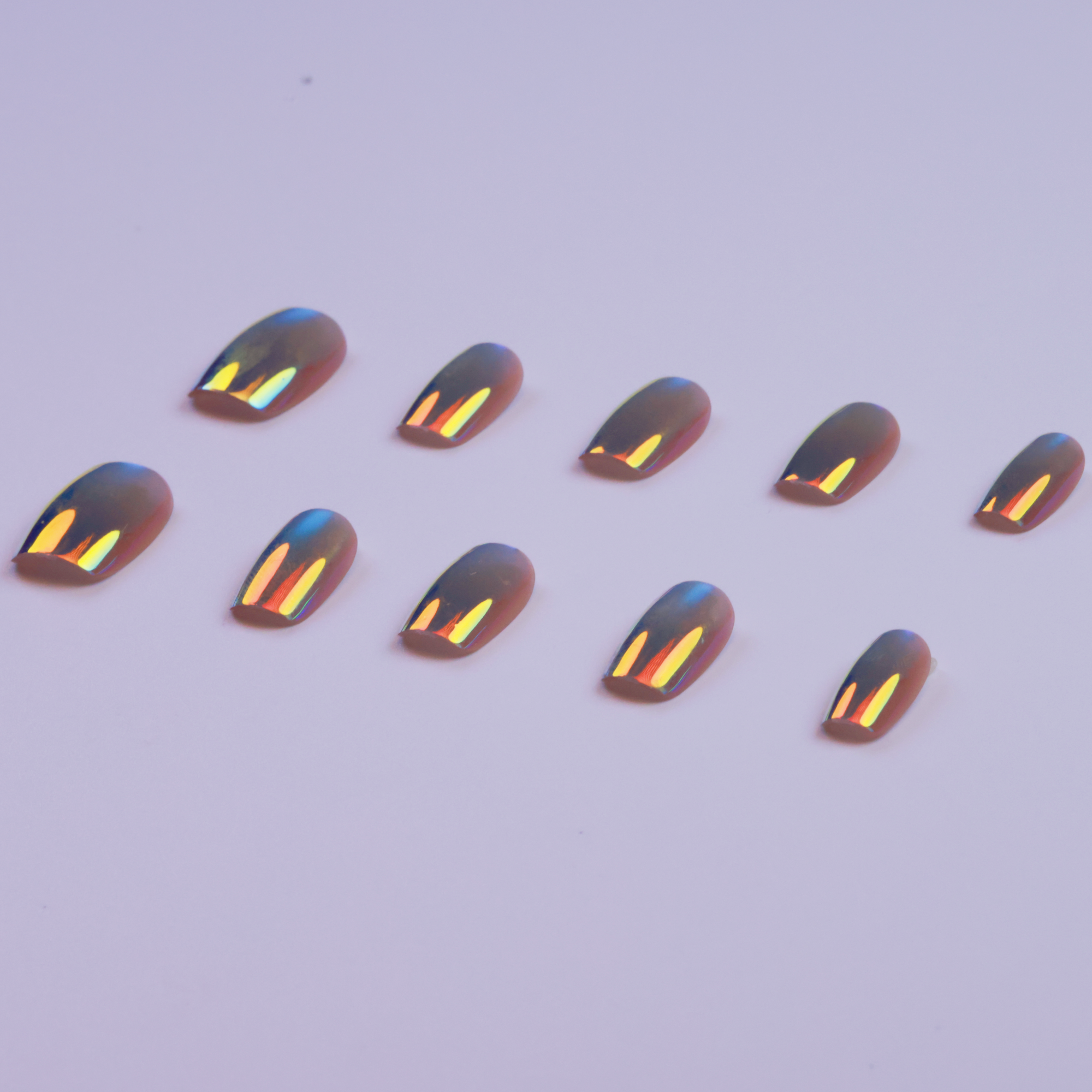 Experience the magic of light with our Soft Shimmer Press-On Nails. This stunning set transforms under different lighting, shifting between radiant hues and creating a mesmerizing color-changing effect. Whether you're in the sun or under soft indoor lighting, your nails will reflect a unique and dazzling spectrum of colors.